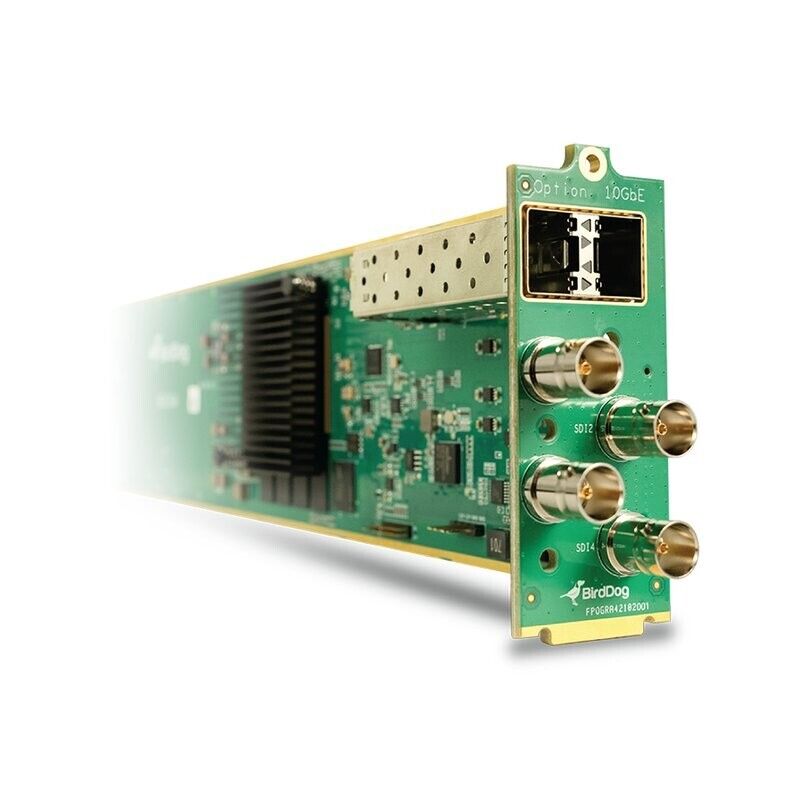 BirdDog OG4 ist die weltweit erste NDI-OpenGear-Karte. Sie bietet vier unabhängig voneinander konfigurierbare 12G-SDI-Anschlüsse. Vollständige Dashboard-Unterstützung ist ebenso enthalten wie ein SFP+-Port für 10GbE-Konnektivität.