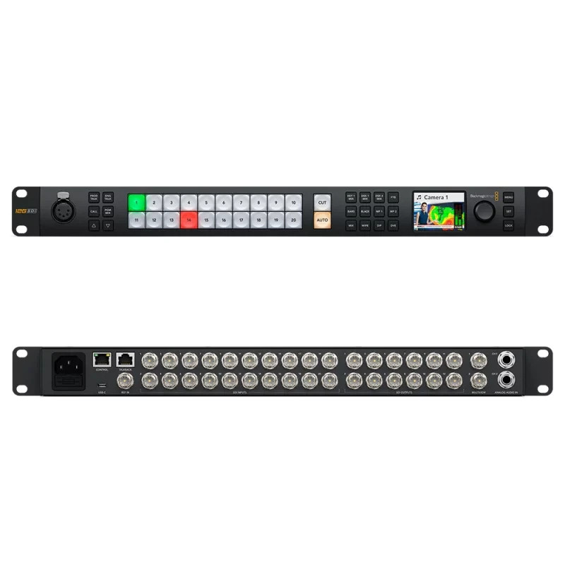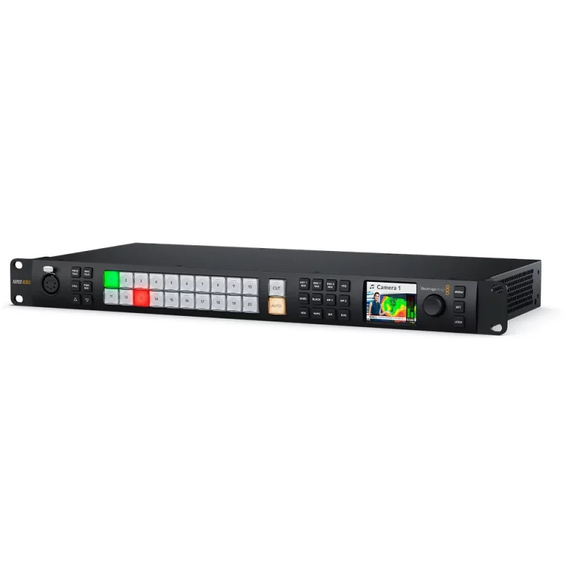 Hochentwickelter 2-ME-Live-Produktionsmischer mit 20 skalierbaren 12G-SDI-Eingängen, 12 Aux-Ausgängen für 12G-SDI-Eingängen, 12 Aux-Ausgängen für 12G-SDI, 2 DVE, 8 ATEM Advanced Keyern, 2 Multiviewern und SuperSource-Prozessor für insgesamt 6 DVE.