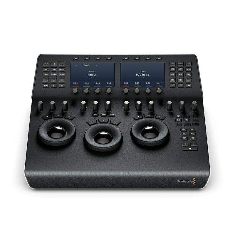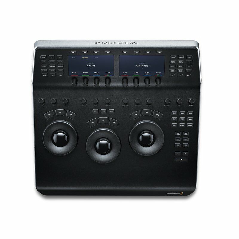 Ein kompaktes professionelles Bedienpult mit drei ultrapräzisen, gewichteten Trackballs und 12 hochauflösenden Reglern für die wichtigsten Tools. Die angehobene Steuerebene bietet zwei 5″-Bildschirme, acht Multifunktionsregler und acht Multifunktionstasten sowie dedizierte Tasten, mit denen man Toolkategorien wechselt, mit Nodes arbeitet, Standbilder ergreift, durch die Timeline navigiert und vieles mehr!