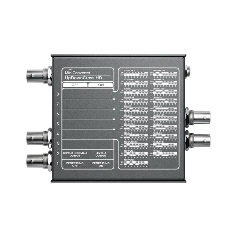 Der Mini Converter UpDownCross HD von Blackmagic Design ist ein vollwertiger Normwandler, der jedes beliebige SD- oder HD-Videoformat in ein beliebiges anderes SD- oder HD-Videoformat konvertiert. Geboten werden sowohl SDI- als auch HDMI-Eingänge und -Ausgänge komplett mit einem Referenzeingang für den integrierten Resynchronisierer, hochwertige Teranex-Algorithmen für die Konvertierung, automatische Audioverzögerung für perfekte AV-Synchronisierung, ein internationales Netzteil und mehr.
