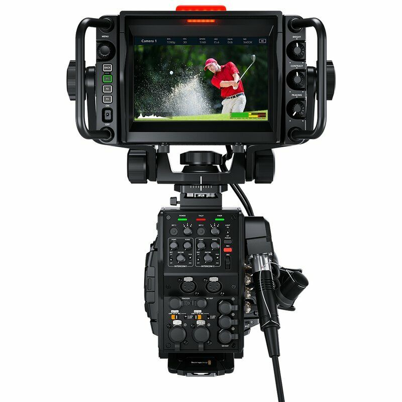 Ob Sie im Studio oder an weitläufigen Veranstaltungsorten wie einem Stadion mit Live-Drehs zugange sind, der Blackmagic URSA Studio Viewfinder bietet alles Nötige für komfortables Arbeiten mit Ihrer URSA Mini bei Liveproduktionen. Mit abnehmbarer Gegenlichtblende, großen Griffen und Schwenkgelenk ist der helle 7-Zoll-Bildschirm perfekt ausgestattet, um Suchermonitor und Kamera unabhängig voneinander zu bewegen und ersteren in Position zu bringen. Die großen Drehregler und benutzerdefinierbare Funktionstasten lassen Sie Änderungen spontan ausführen, ohne die Action aus dem Blick zu verlieren. Mit der integrierten V-Lock-Platte geht das Setup schnell und einfach. Sie wird direkt an den SDI-Monitor und die Strombuchse Ihrer URSA Mini angeschlossen. Zusätzliche Kabel oder Netzadapter sind nicht nötig.