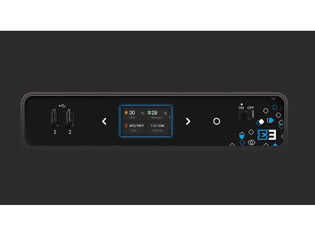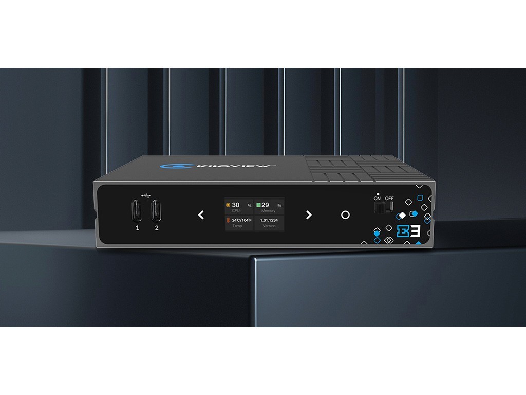 Der E3 ist mit einem 1,14-Zoll-LCD-Bildschirm mit Touch-Tasten für eine optimierte Benutzerführung ausgestattet. Über den integrierten LCD-Bildschirm lassen sich Konnektivität, IP-Adresse, CPU-Auslastung, Speicherkapazität, Auflösung, Temperatur und der Tally-Status in Echtzeit ablesen. Der große LCD-Bildschirm dient gleichzeitig als Tally-Anzeige zur Vorschau und Programmstatusanzeige.