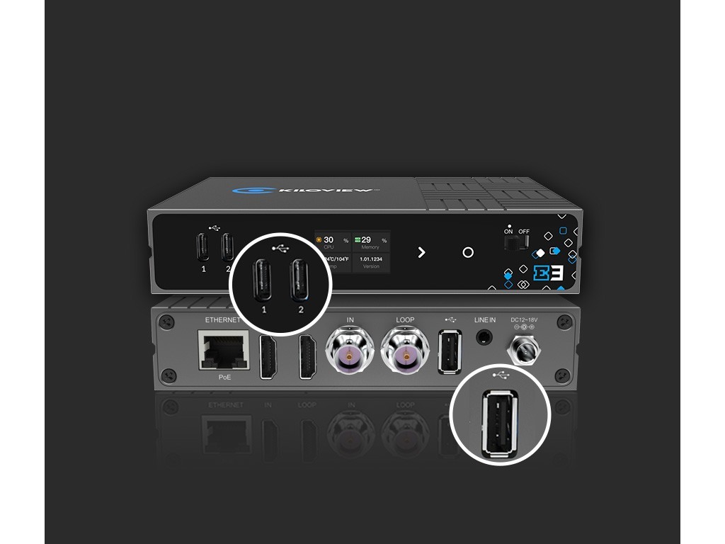 Alle Eingänge des E3 können über drei USB-Anschlüsse oder einen NAS-Speicher im .MOV- oder .MP4-Format aufgezeichnet werden. Er unterstützt gleichzeitiges Streaming und Aufzeichnen für die Nachbearbeitung und weitere Anwendungen.