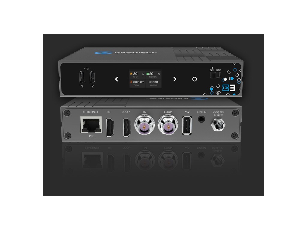 Der Kiloview E3 ist ein Video-Encoder der neuen Generation, der auf den Funktionen unserer ursprünglichen Encoder-Modelle aufbaut und neue Videoeingangs- und Durchschleiffunktionen mit HDMI bis zu 4K P30 und 3G-SDI bis zu 1080 P60 bietet. Er codiert HDMI- und 3G-SDI-Videos gleichzeitig mit H.265 und H.264¹ oder entweder eine der beiden Quellen oder eine Mischung beider Videoquellen mit verschiedenen Protokollen wie NDI|HX2/NDI|HX3/SRT/RTMP/RTSP/UDP/HLS für Live-Produktion, Postproduktion, Fernübertragung, Live-Streaming oder Aufzeichnung in verschiedenen Branchen. Dank des modernen Chipsatzes und der HEVC-Technologie unterstützt er das Streaming an bis zu 16 Ziele² mit einer einstellbaren Bitrate von bis zu 100 Mbit/s gleichzeitig.