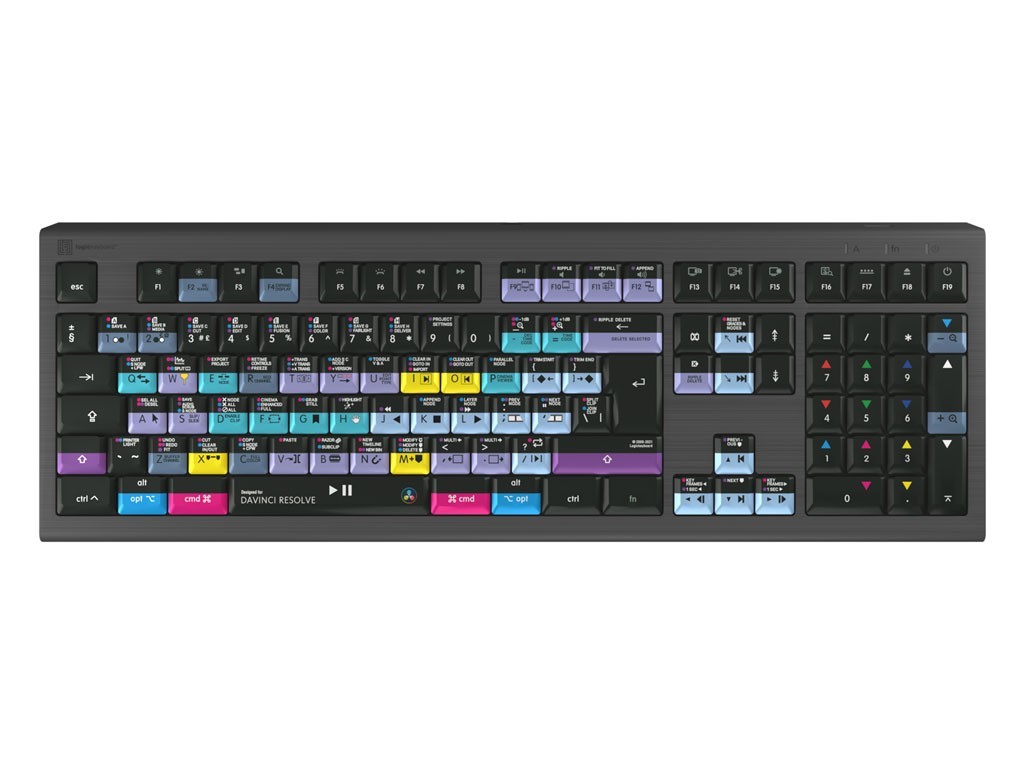 Dieses Logickeyboard ist Ihre erste Wahl beim Bearbeiten in DaVinci Resolve. Die auf den Tasten beschrifteten Tastenkombinationen und ihre farbcodierten Definitionen machen Sie im Handumdrehen zum Meister der Steuerung von DaVinci Resolve. Das Logickeyboard ist ideal für Postproduktionseinrichtungen, professionelle Schnitthäuser und alle anderen, die mit DaVinci Resolve arbeiten.
