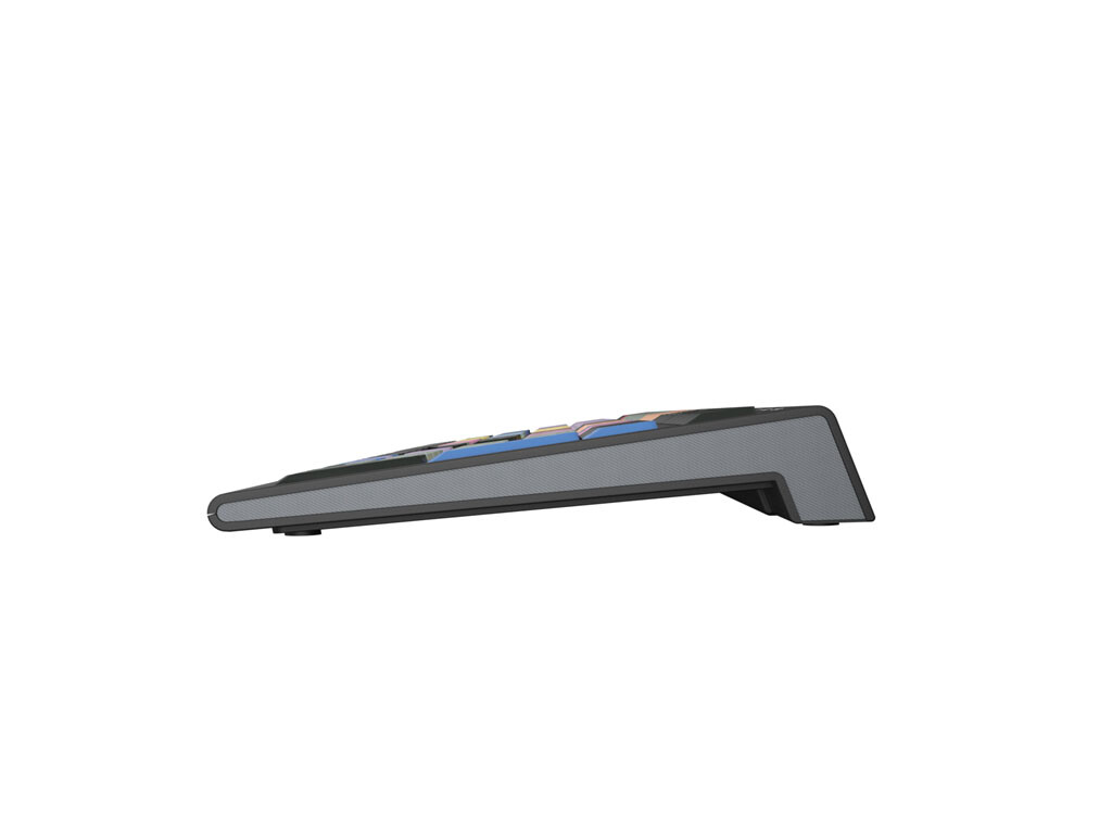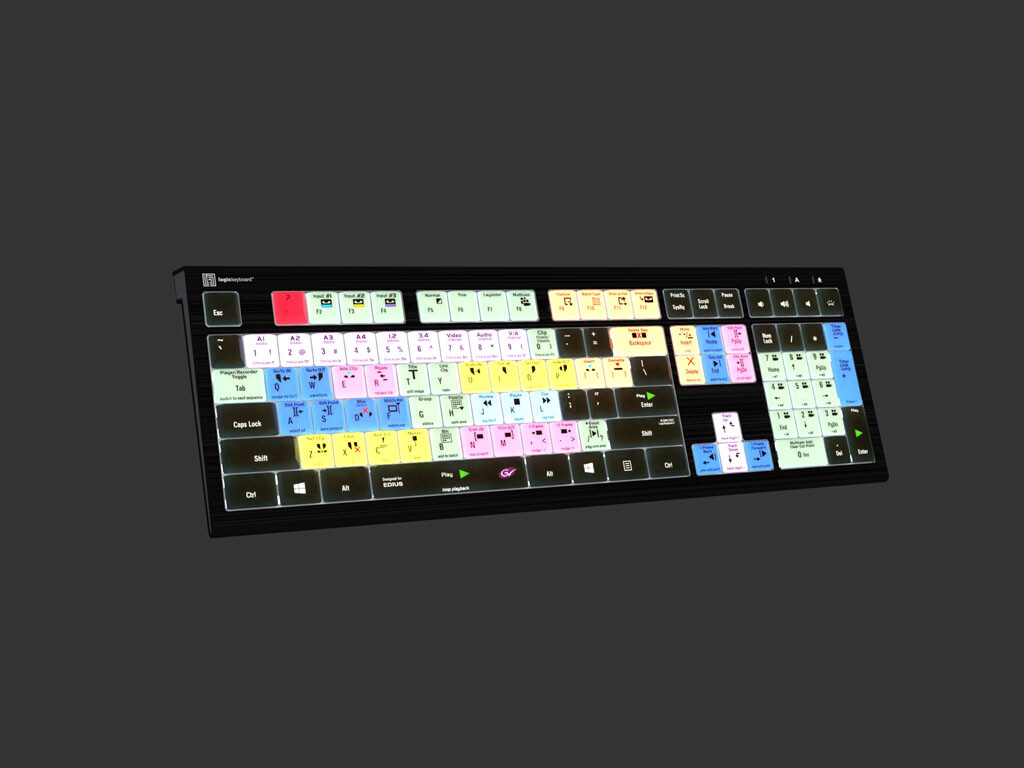 Das dedizierte Logickeyboard von Grass Valley Edius bietet auch alle normalen Buchstaben, Zahlen und Symbolbeschriftungen, die Sie auf einer herkömmlichen Tastatur finden, es kann einfach als Ersatz dafür verwendet werden. Die Tastatur ist einfach anzuschließen und erfordert keine Softwareinstallation.