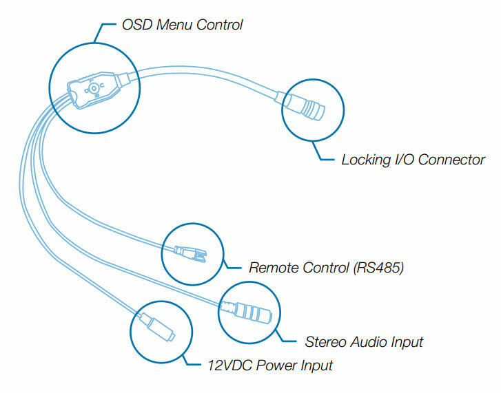 - Pedestal, White Clip, Exposure, Weißabgleich, Gamma, Gain, Schärfe einstellbar über Steuerkonsole CV-RCP-V2 (separat erhältlich) oder Camera Control Software