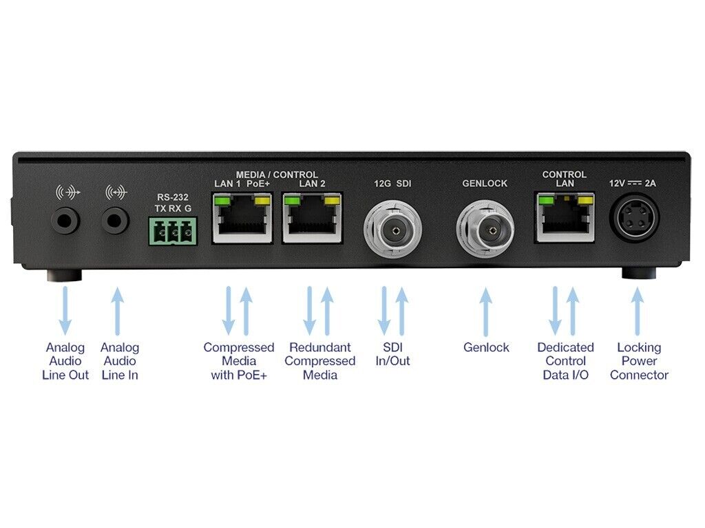 Matrox ConvertIP DRS ist ein kompaktes, eigenständiges ST 2110- und IPMX-Sende-/Empfangsgerät. Mit 12G-SDI, Genlock und drei RJ45-Ports auf einem einzigen Gerät wurde ConvertIP DRS für 1G-AV-Workflows entwickelt und ist optimal für ein Erlebnis mit extrem niedriger Latenz. Das Gerät kann über seinen RJ45-Anschluss Strom über Ethernet liefern oder über ein optionales Netzteil mit Strom versorgt werden. Beide können gleichzeitig verwendet werden, um Stromredundanz bereitzustellen.