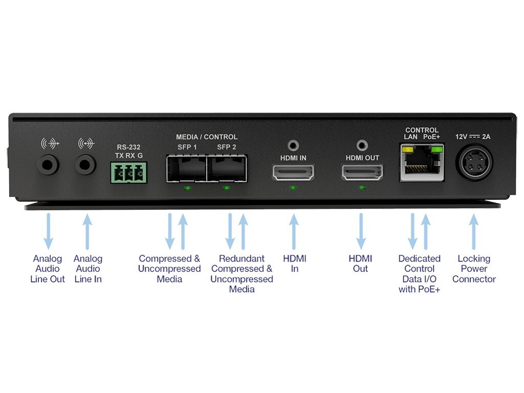 Matrox ConvertIP DSH2 ist ein kompaktes, eigenständiges ST 2110- und IPMX-Sender-/Empfängergerät. Mit HDMI-E/A, einem RJ45- und zwei SFP28-Ports auf einem einzigen Gerät ist ConvertIP DSH für komprimierte und unkomprimierte Workflows bis zu 25G ausgelegt und bietet optimale Leistung für extrem niedrige Latenzzeiten. Das Gerät kann über seinen RJ45-Anschluss Strom über Ethernet oder über ein optionales Netzteil liefern. Beide können gleichzeitig genutzt werden, um eine redundante Stromversorgung zu gewährleisten.