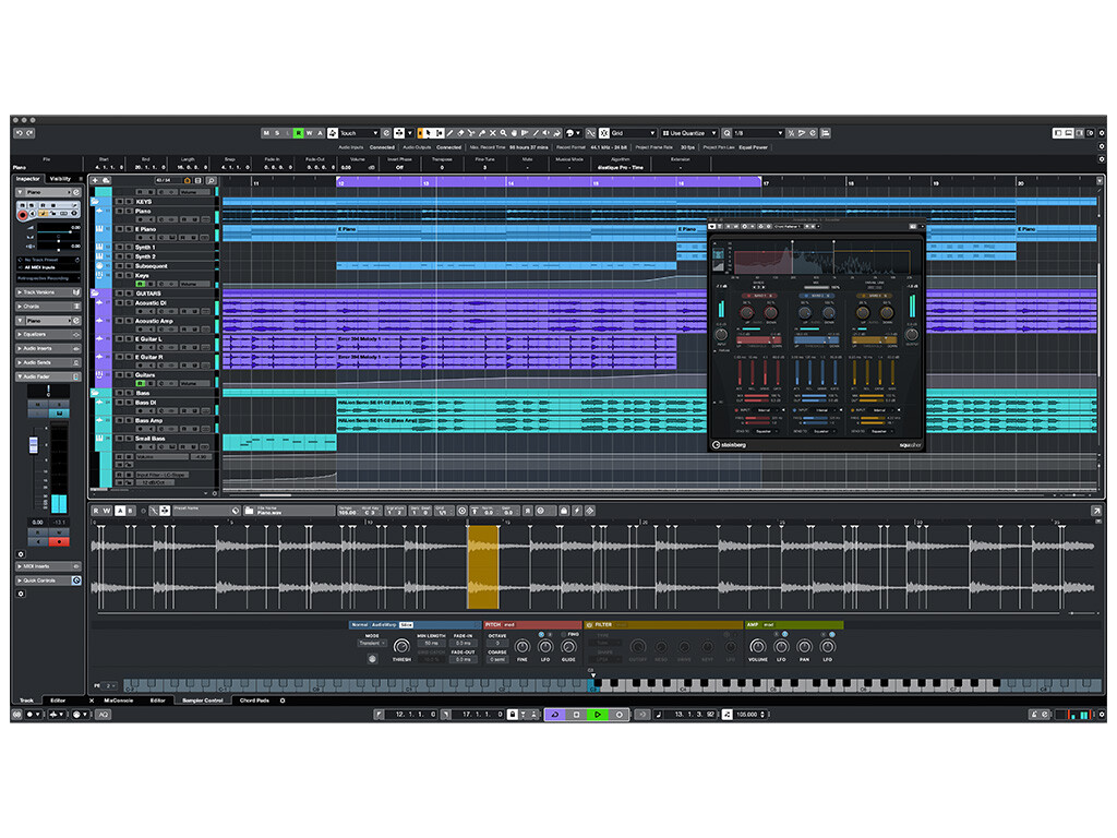 • Beinhaltet eine Suite von über 40 Audio-Effektprozessoren, darunter High-End VST Dynamics, Pitch Correct zur Intonationskorrektur von Gesang und die VST Amp Rack Gitarren-Sound-Suite