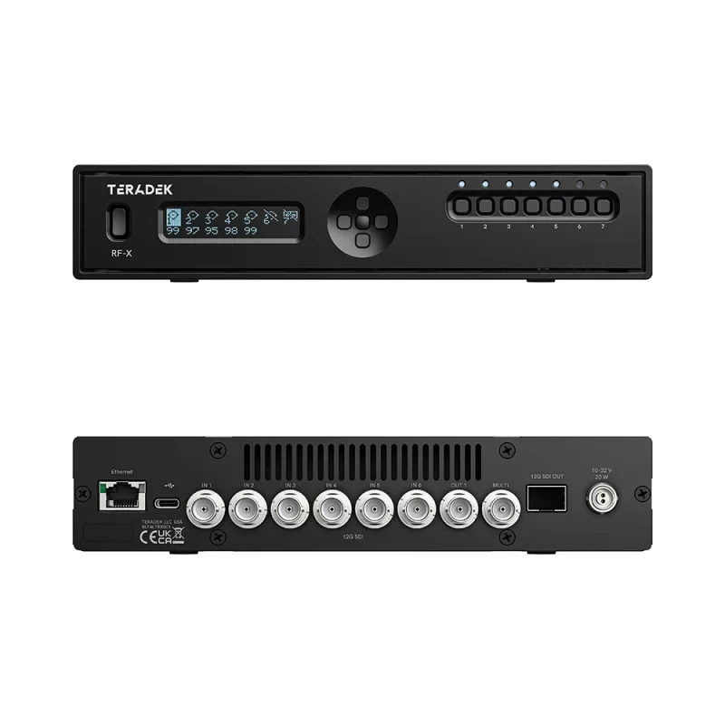 Das Teradek RF-X (Radio Frequency Matrix) ist ein intelligentes Auto-Switching-System, das bis zu sechs redundante Bolt- oder Ranger-Empfänger (über SDI-Kabel) kontinuierlich überwacht und automatisch das stärkste verfügbare Videosignal auswählt. Das Ergebnis ist ein einziger, unterbrechungsfreier 12G-SDI-Ausgang, selbst in Umgebungen mit hoher Funkfrequenzauslastung. RF-X wurde für Broadcast, Live-Events und Filmproduktionen entwickelt und liefert die bestmögliche Videoqualität über komplexe Signalwege hinweg – verzögerungsfrei und ohne Benutzereingriff.
