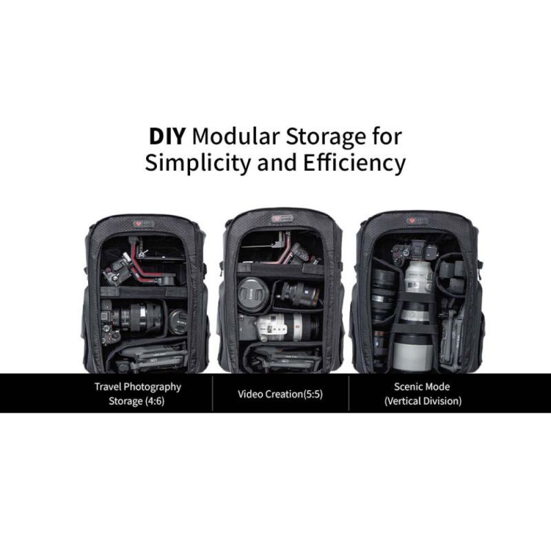 - 20L Variante: Platz für ca. 1-2 Kamerabodies + 3-4 Objektive + + 16″ dünnes Notebook oder 11″ Tablet