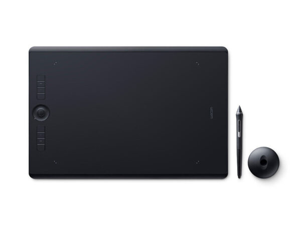 Das Wacom Intuos Pro ist in den Größen M und L erhältlich. Die Abmessungen beider Ausführungen sind etwas kleiner und kompakter als bei den Vorgängermodellen. Bei der Herstellung des Wacom Intuos Pro werden qualitativ hochwertige Materialien verwendet wie schwarzes, eloxiertes Aluminium und glasfaserverstärktes Kunstharz. So entsteht schließlich ein Stifttablett, das sich zwar äußerst robust anfühlt, aber nur 8 mm stark ist.