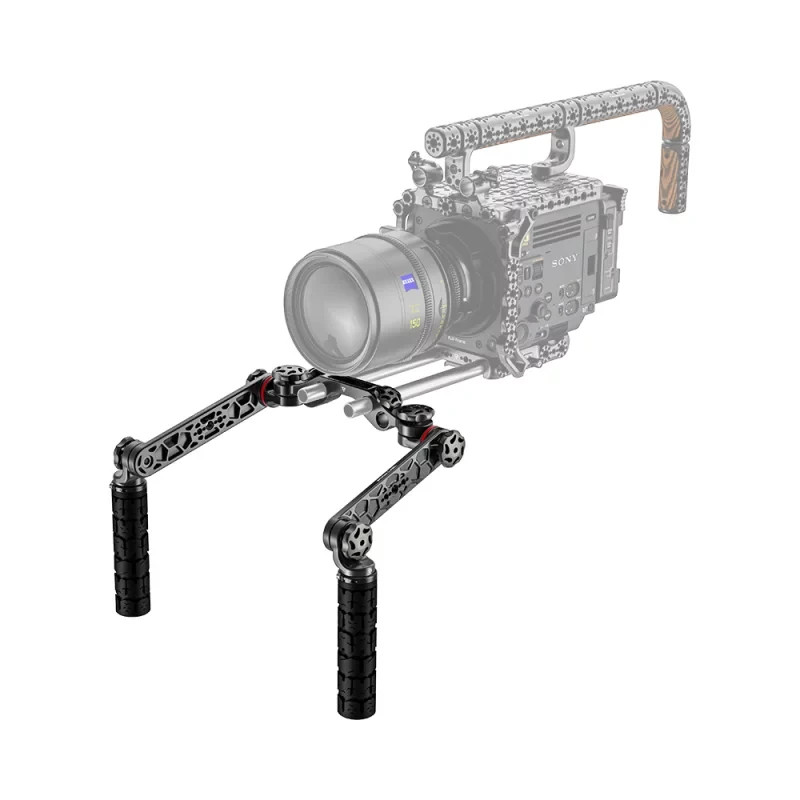 Die 15mm-Studiokreuzschiene wurde so konzipiert, dass sie auch dann an den Studiostangen befestigt bleibt, wenn die Kamera an einem ARRI-Standardschwalbenschwanz montiert ist. Dies spart Zeit und verhindert das lästige Entfernen der Querstange beim Wechsel zwischen Hand- und Stativaufnahmen. 15mm-LWS-Ausschnitte an der Kreuzschiene erhöhen ihre Vielseitigkeit zu maximieren, mit 32mm-Schwenkrosetten lässt sich die Positionierung des Arms zur Kamera anpassen.