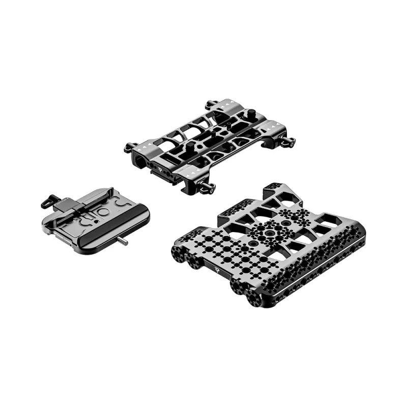 Core Accessory System wurde entwickelt, um Anwendern wichtige Zubehör-Montagepunkte zu bieten und gleichzeitig eine solide Grundlage für die Erweiterung des Kamera-Setups zu schaffen. Die Riser Plate und die ARCA Base Plate halten den Aufbau auf der richtigen optischen Höhe und ermöglichen schnelle Wechsel zwischen Steadicam-, Schulter- oder Stativ-Workflows. Die Top Plate fügt etliche Befestigungspunkte hinzu und umfasst eine abnehmbare Dual Rod Clamp. Die Top Plate kann mit dem Blackmagic URSA Handle verwendet werden.
