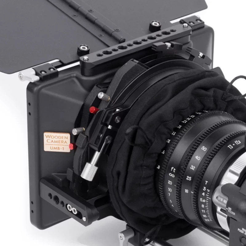 Die UMB-1 Universal Mattebox (Base) kommt serienmäßig mit zwei rotierenden 4×5,65 Filterstufen (optionale dritte Stufe verfügbar), individuellen Trayhaltern, faltbarer Frenchflag, 143mm Durchmesser Öffnung, einer höhenverstellbaren 15mm LW Stabhalterung, die an Studiostäbe angepasst werden kann, einem Universal Stoffdonut mit leicht greifbaren Fingerschlaufen, und NATO-Standardzubehörschienen links, rechts und oben zum Anbringen von Zubehör.
